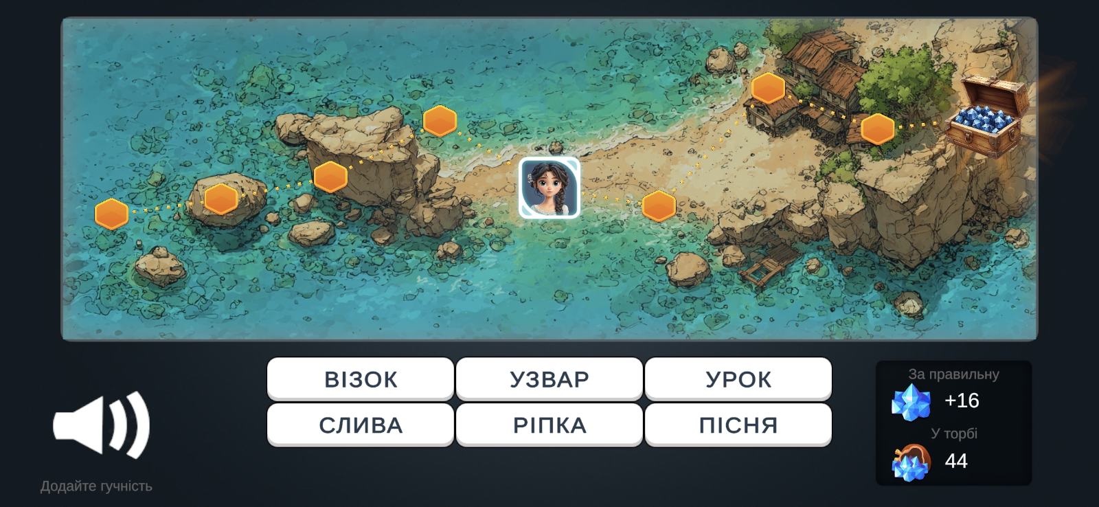 Але найбільше задоволений новою системою нагород та підказок. Раніше було просто: відповів — молодець, помилився — спробуй ще. Але бачив, що діти іноді починають просто вгадувати, аби швидше пройти. Або, навпаки, засмучуються, якщо не виходить, і кидають гру.
